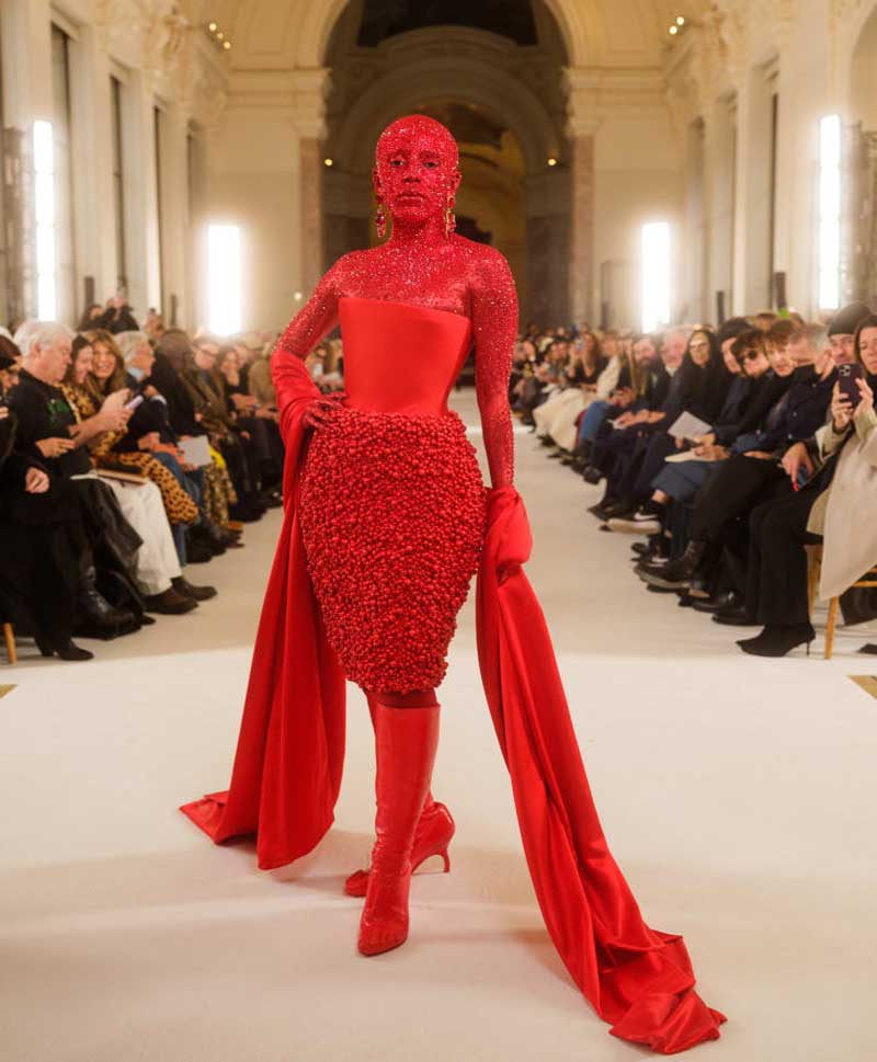 The singer’s arrival at the Petit Palais in Paris marked a dramatic start to Schiaparelli’s Couture Spring-Summer 2023 show, the opening event of the biannual Haute Couture Week in Paris. Dubbed “Inferno Couture,” the label’s latest collection was inspired by Dante’s “Inferno” and the nine circles of hell, according to Roseberry’s show notes.