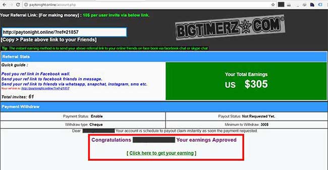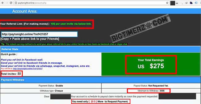 That is it! You instantly get $25 sitting in your so-called ‘account’ which would have to swell to a minimum of $300 before you can cash it out by sharing a given referral link to make others too ‘innocently’ register same on social media. Really???