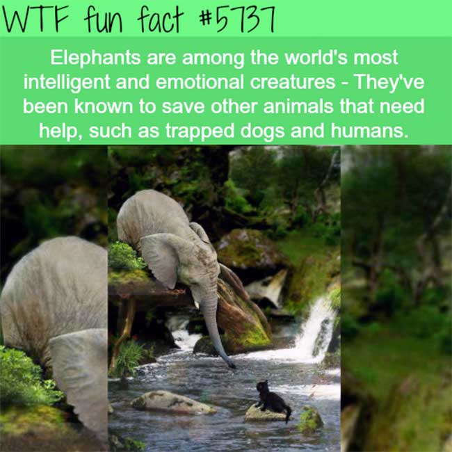 1. Elephants are among the World’s most intelligent and emotional creatures – They have been known to save other animals that are in dire need of help, such as trapped dogs and humans.