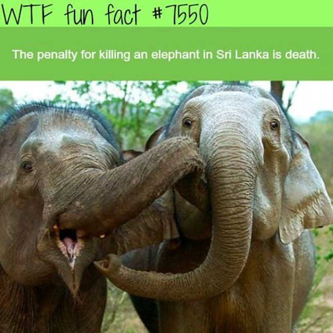 5. Yeah! The penalty for k!lling an Elephant in Sri Lanka is death unlike some other countries in Africa.