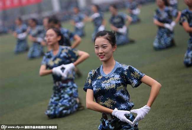 “Military training is compulsory for freshmen in China and generally takes place at the beginning of college.